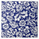 Ceramic tile in a vintage William Morris floral damask pattern, digitally enhanced and coloured, in white on a deep cobalt blue background