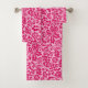 Towel set in a vintage William Morris floral damask pattern, digitally enhanced and coloured, in deep fuchsia pink on a pastel pink background