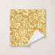 Towel set in a vintage William Morris floral damask pattern, digitally enhanced and coloured, in light mustard yellow on a mustard gold background