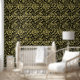Elegant style and pattern for your space, our William Morris Gold and Black Floral Wallpaper portrays a golden floral pattern, luxurious modern black background, elegant, and historical for any room.