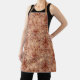 Apron in a vintage William Morris pattern of hyacinths, tulips and leaves, in shades of deep chocolate brown and cream, accented with rust / terracotta, on a light coffee beige / tan background