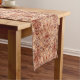 Table runner in a vintage William Morris damask pattern of hyacinths, tulips and leaves, in shades of deep chocolate brown and cream, accented with rust / terracotta, on a light coffee beige / tan background