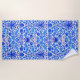 Beach towel in a vintage William Morris pattern of hyacinths, tulips and leaves, in shades of cobalt and cerulean blue, accented with dark navy, on a white background