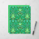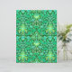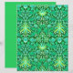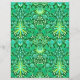 Paper in a vintage William Morris pattern of hyacinths, tulips and leaves, in shades of emerald and jade green, accented with aqua and white, on a deep forest green background