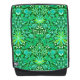 Backpack in a vintage William Morris pattern of hyacinths, tulips and leaves, in shades of emerald and jade green, accented with aqua and white, on a deep forest green background