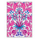 Note card in a vintage William Morris pattern of hyacinths, tulips and leaves, in shades of fuchsia and soft pink, accented with dark blue and turquoise, on a white background