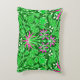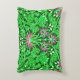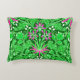 Accent pillow in a vintage William Morris pattern of hyacinths, tulips and leaves, in shades of lime green, accented with fuchsia pink and white, on a deep emerald green background