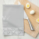 white william morris pattern,pastel silver white floral,flowery swirling flower design,famous british english artist,traditional family surname flowers, "classic classy custom monogram", "personalised customised kitchen towel", "light grey personal name", "elegant stylish grey dishcloth", "vintage add your own text"