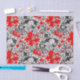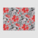 Tissue paper in a vintage William Morris floral print of stylised lilies and Irises, digitally enhanced and coloured, in shades of grey / grey and black foliage, with deep red flowers,on a white background