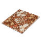 Ceramic tile in a vintage William Morris floral print of stylised lilies and Irises, digitally enhanced and coloured, in shades of rust, tan, light brown, and creamy white on a dark chocolate brown background