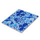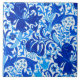 Ceramic tile in a vintage William Morris floral print of stylised lilies and Irises, digitally enhanced and coloured, in shades of deep cobalt blue, cerulean blue, and light sky blue on a white background