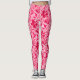 Leggings patterned in a vintage William Morris floral print of stylised lilies and Irises, digitally enhanced and coloured, in shades of light to deep fuchsia pink and deep wine red on a white background