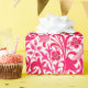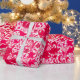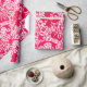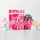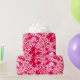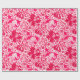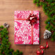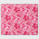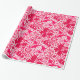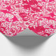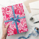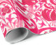 Wrapping paper in a vintage William Morris floral print of stylised lilies and Irises, digitally enhanced and coloured, in shades of light to deep fuchsia pink and deep wine red on a white background