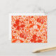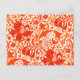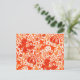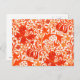 Postcard in a vintage William Morris floral print of stylised lilies and Irises, digitally enhanced and coloured, in shades of light to deep Mandarin orange on a white background, digitally coloured and enhanced