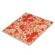 Ceramic tile in a vintage William Morris floral print of stylised lilies and Irises, digitally enhanced and coloured, in shades of light to deep Mandarin orange on a white background