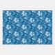 Wrapping paper in a vintage William Morris floral print of stylised lilies and Irises, digitally enhanced and coloured, in shades of grey / grey and black foliage, with deep red flowers, on white, shades of grey / grey and white on black, and shades of sky blue and white on dark indigo blue