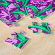 Puzzle in a William Morris, Art Nouveau, textile print of irises and leaves, digitally enhanced and colored, in soft orchid and turquoise, on a deep amethyst purple background