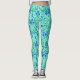 Leggings in a William Morris, Art Nouveau, textile print of irises and leaves, digitally enhanced and coloured, in deep cobalt and sky blue, on a soft aqua background with deeper aqua and teal leaves