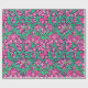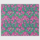 Wrapping paper in a William Morris, Art Nouveau, textile print of irises and leaves, digitally enhanced and coloured, in fuchsia and ice pink, peacock green, and white, on a deep wine purple background