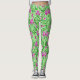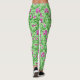Leggings in a William Morris, Art Nouveau, textile print of irises and leaves, digitally enhanced and coloured, in magenta purple and orchid pink, with emerald and lime green leaves, on a pastel green background