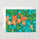 William Morris Irises, Orange and Turquoise Postcard
