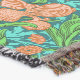 Throw in a William Morris, Art Nouveau, textile print of irises and leaves, digitally enhanced and coloured, in mandarin orange, lime green, and soft aqua, on a deep turquoise / teal background