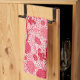 Hand towel in a William Morris Art Nouveau textile pattern - elegant, stylized, chrysanthemums, sunflowers and leaves, in pastel to deep coral pink and coral red, on a white background