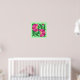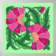 Print in a vintage William Morris Jacobean floral tile pattern, digitally enhanced and coloured, in shades of deep fuchsia pink and magenta, with emerald green leaves, on a light green background