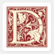 William Morris Letter D Monogram Initial Red Square Sticker