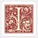 A decorative red antique Letter I monogram initial. Typography by English designer William Morris 1834-1896.