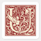 A decorative red antique Letter U monogram initial. Typography by English designer William Morris 1834-1896.
