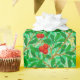 Wrapping paper in a William Morris Art Nouveau textile pattern of lychee tree branches and leaves, in shades of lime and deep green, accented with red lychee fruits and yellow blossoms, on a light green background