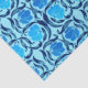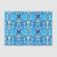Tissue paper in a vintage William Morris textile pattern of stylised pimpernel flowers and leaves - flowers in a gradient of light to dark denim blue on a pastel sky blue background