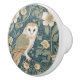 William Morris style Right Teal Cream Barn Owl Ceramic Knob