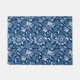 Doormat in a vintage William Morris, Art Nouveau, floral print of stylized sunflowers, digitally enhanced and colored, in dark navy / indigo blue and white, accented with light denim blue