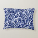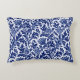 Accent pillow in a vintage William Morris damask pattern of thistle flowers and leaves, in deep cobalt blue, on a white background, digitally enhanced and coloured