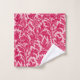 Towel set in a vintage William Morris damask pattern of thistle flowers and leaves, in deep fuchsia pink, on a pastel pink background, digitally enhanced and coloured