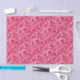 Tissue paper in a vintage William Morris damask pattern of thistle flowers and leaves, in deep fuchsia pink, on a pastel pink background, digitally enhanced and coloured
