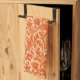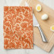 Kitchen towel in a vintage William Morris damask pattern of thistle flowers and leaves, in deep mandarin orange, on a pastel orange background, digitally enhanced and coloured