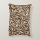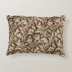 Accent pillow in a vintage William Morris damask pattern of thistle flowers and leaves, in light beige, on a taupe tan / stone background, digitally enhanced and coloured