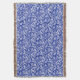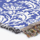 Throw blanket in a vintage William Morris damask pattern of thistle flowers and leaves, in white on a cobalt blue background, digitally enhanced and coloured