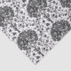 Tissue paper in a William Morris Art Nouveau take on a traditional "tree of life" pattern, featuring fantasy trees surrounded by branches filled with exotic flowers and birds, black and shades of grey / grey, on a white background
