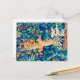 Postcard in a William Morris illustration of two hares running through a wild forest setting - digitally enhanced and coloured