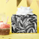 Wrapping paper in a vintage William Morris pattern of stylised willow branches, in shades of silver grey / grey, graphite grey, and white on a black background