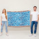Throw blanket in a vintage William Morris pattern of stylised willow branches, in shades of cobalt and cerulean blue with dark indigo, on a white background