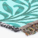Throw blanket in a vintage William Morris pattern of stylised willow branches, in turquoise / peacock and dark teal, on a light aqua background