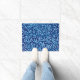 Doormat in a William Morris Art Nouveau textile pattern of stylised willow branches and leaves in shades of light sky blue, accented with white, on a dark cobalt / navy blue background