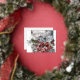 William morris wreath floral textile art red blue foil holiday postcard