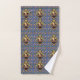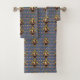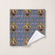 The Bard - The original artwork by ZoeSPEAK on this Bath Towel Set is a pattern made with a portrait of the author William Shakespeare. The portrait is in an ornate oval gold frame with ribbons and a crown on top. The blue background wallpaper is decorated with castles, kings' crowns and yellow and red flowers, bringing to mind the romance, tragedy and comedy of his plays and poetry.