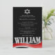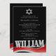 Steel Star of David and red and black wave design with the name "William". Contact this designer for a custom Name invitation in your favourite colour. Great for Bar Mitzvahs, Bat Mitzvahs, Graduations and Birthdays. Bold block name over a wave of colour.